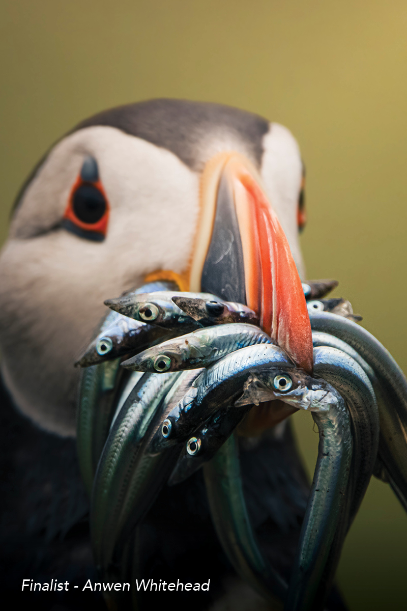 While photographing this puffin, I decided to focus my camera on the fish in their beak to showcase the circle of life. These sand eels are an important food source for many seabirds, and puffins will often carry multiple fish back to their burrows to feed their hungry chicks.
