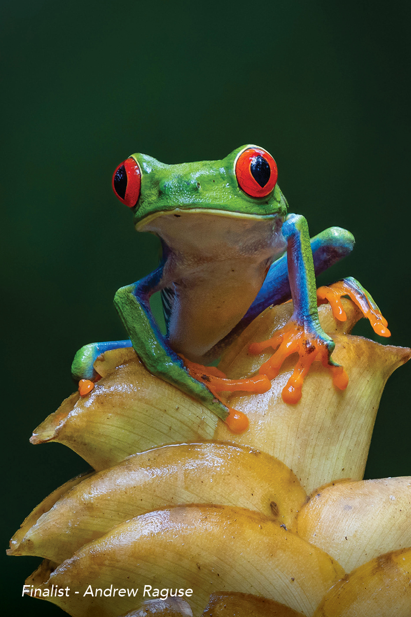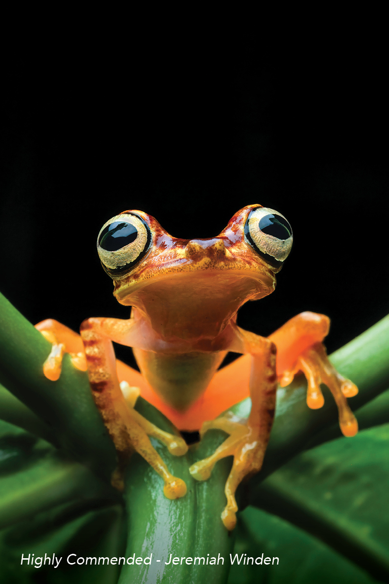 Costa Rica’s rainforests are famous for their amazing diversity of frogs and other amphibians. To capture a sharp photograph of this spectacular frog in the dark undergrowth without any artificial lighting, 12 images were skillfully stacked together.