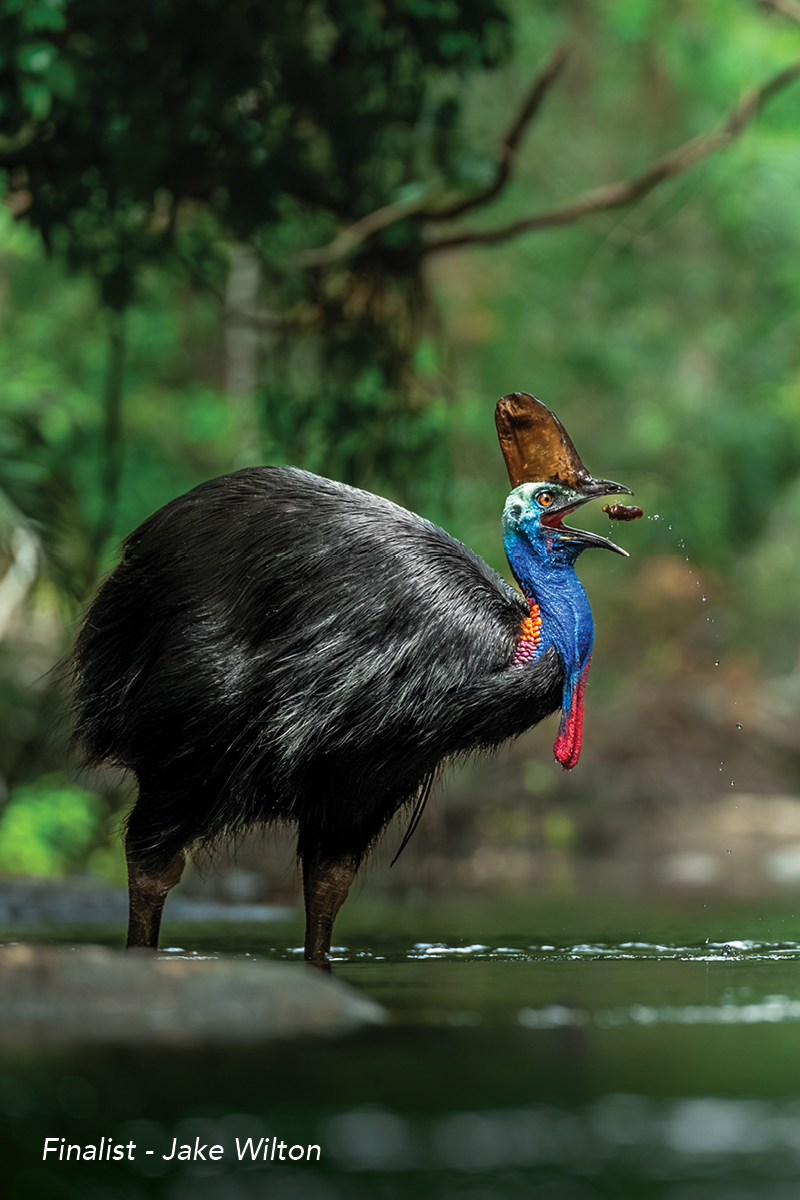 A Southern Cassowary forages for fruits in the Daintree Rainforest. After spotting the cassowary upstream, I positioned myself on a rocky bank and waited as it slowly approached, plucking fruits from the creek along the way. As a keystone species it is an essential seed disperser for the rainforest.