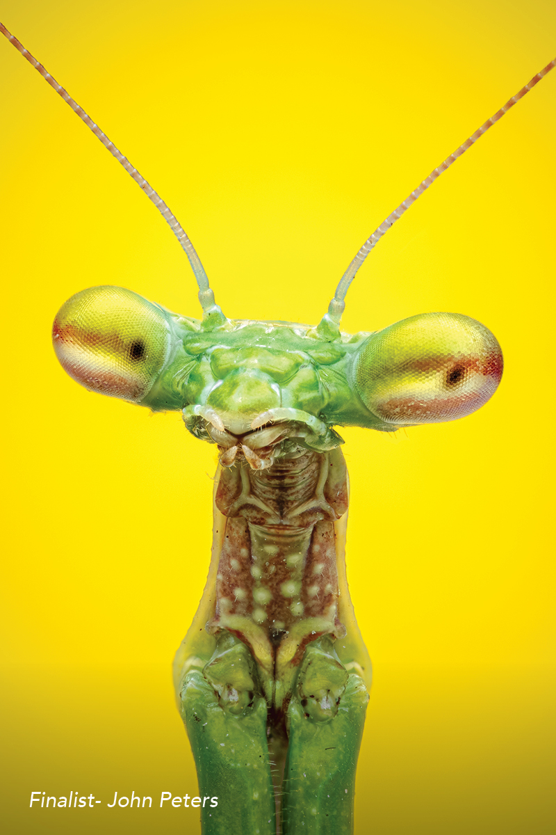 This might seem like a regular-sized mantis, but this is actually a mantis nymph, a juvenile, with his head spanning only 3 millimeters! With the naked eye, it’s hard to see many details of insects this small, but thanks to high magnification lenses and focus-stacking, much can be revealed.
