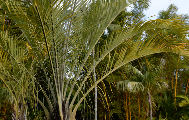 This unique palm is native to Madagascar! It is identified by palm fronds that grow almost upright from the trunk and then arch outwards to form the shape of a triangle. This palm can thrive all year round in the Madagascan environment.